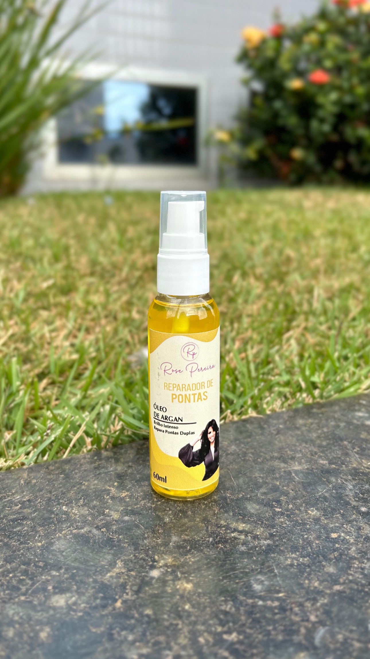 O Reparador de Pontas Óleo de Argan Rose Pereira, contém Óleo de Argan puro, proporciona um brilho intenso e repara pontas duplas.